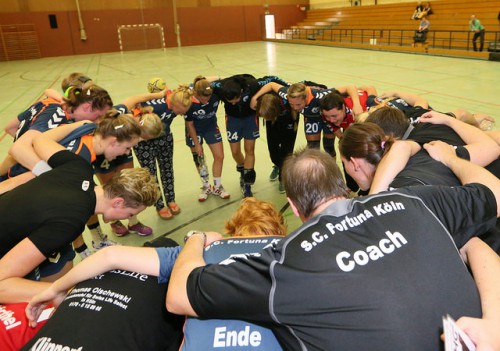 Die zweite Hälfte begann ähnlich ausgeglichen mit einem kleinen Vorteil auf Seiten der Fortuna, die sich in Minute 37 mit 17:15 ihren ersten zwei-Tore-Vorsprung erarbeiten konnte. Doch lange konnte man diesen nicht behaupten, denn zwischen der 40. Und 50. Minute leistete sich Köln eine kurze Schwächephase, die sie wohlmöglich den Sieg kostete. Denn in der Zeit machten die Gäste aus einem 19:17 ein 20:23. Trotz allem hatten die Südstadtkanonen im Anschluss noch öfter die Möglichkeit aufzuschließen, doch schlichen sich nun wieder Unkonzentriertheiten im Abschluss sowie technische Fehler ein. Dass es wohl einfach nicht hatte sein sollen zeigte sich in der letzten Spielminute, als Steffi Herschbach im Zweikampf den Ball im Netz unterbrachte, die Schiedsrichter aber auf Stürmerfoul entschieden und Fortuna somit der Ausgleich verwehrt wurde. Im Gegenzug erzielte Kleenheim (laut elektronischem Spielbericht) per direktem Freiwurf das 26:28 – gesehen hat dies aber keiner (zu groß war die Aufregung auf Seiten der Fortuna über das gegebene Stürmerfoul).