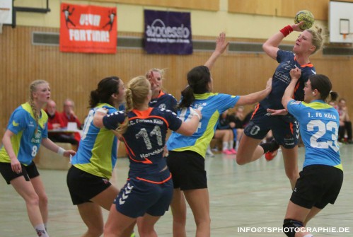 Die Südstadtkanonen starteten gut in die Partie und führten nach 6 Minuten mit 5:2 und das auch dank der treffsicheren Julia Schumacher. Doch dann stellten die Gäste die Abwehr um von einer 6:0 in die offensivere Variante 5:1 und Mainz-Spielerin Lara Leukefeld auf der "1" zog den Angreiferinnen der Fortuna reihenweiße den Zahn. Die etlichen Ballverluste wusste vor allem die schnelle Rechtsaußen der Gäste Kristin Gärtner zu nutzen und so stand es zur Pause 9:15 aus Fortuna-Sicht. Leider kamen die "Ischn" aus Mainz auch etwas wacher aus der Pause und der Vorsprung vergrößerte sich sukzessiv.