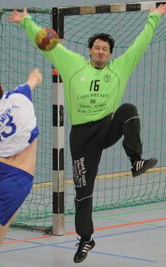 In der Tat konnte sich die Fortuna schnell auf 6:1 absetzen. Beim 9:2 nach zehn Minuten war das Spiel eigentlich schon entschieden. Die Deckungsreihe der Südstädter stand kompakt und ließ wenige Würfe des TVB zu. Kam doch mal ein Ball aufs Tor, so war er sichere Beute für Fortuna-Schlussmann Manfred Hoffmann, der die ersten drei Siebenmeter des Gastes parieren konnte. Ganz anders lief es vor dem anderen Tor. Kamen die Fortuna-Spieler nicht völlig frei, z.B. über den guten Tim Laacks, im Gegenstoß zum Torwurf, gelang es immer wieder durch sicher vorgetragene Konzeptionen große Lücken in die Abwehr des TVB zu reißen, um diese konsequent zu nutzen. Über 12:4 erspielten sich die Kölner eine 17:5-Halbzeitführung.