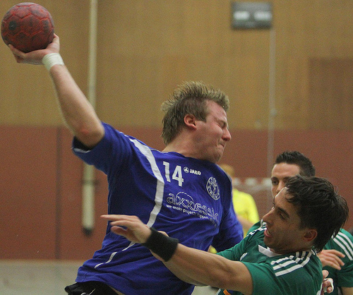 Die Gäste vom Dünnwalder TV kamen etwas besser in das Spiel und gingen zunächst 1:3 in Führung. In der 12. Minute glichen die Südstädter jedoch durch Eric Tiziani zum 5:5 aus und bestimmten ab dem Zeitpunkt die Partie. Bis zur 21. Minute gelang es den Hausherren sich auf 11:7 abzusetzen. Durch eine Doppelte Unterzahl zu diesem Zeitpunkt wurde das Team von Trainer Edi Grunwald jedoch zunehmend verunsichert, sodass man das Heft aus der Hand gab und den DTV auf 11:13 davon ziehen ließ. Zwischenzeitlich kämpften sich die Schweißer auf 13:14 durch Tobias Spinner heran, doch wenige Sekunden vor der Halbzeitpause erhöhte Dünnwald durcheinen7m auf den 13:15 Pausenstand.