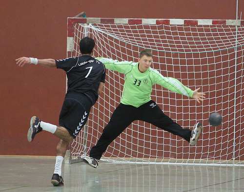 Der Beginn des Spiels versprach ein wahres Offensivfeuerwerk beider Mannschaften, stand es nach 4 Minuten bereits 4:5 für die Gäste. Die Hoffnung, in einem Spiel früh einen deutlichen Vorsprung herauszuarbeiten und diesen stetig auszubauen, fand beim 6:10 in der 15. Spielminute durch Christian Deckarm neue Nahrung. Dass die Fortunen ihrem Motto „klare Siege sind nichts für unsere Nerven“ treu blieben, zeigte sich dann allerdings mit Pfiff zum Pausentee. Mit 11:14 bat Cheftrainer Kolbe seine Jungs in die Kabine. Ein sich Mitte der ersten Hälfte steigernder Stefan „Silvio“ Hinkelmann, ein gut aufgelegter Christian „Decki“ Deckarm und zu Beginn der Partie hellwacher Christian Hergesell machten Mut für die zweite Hälfte.