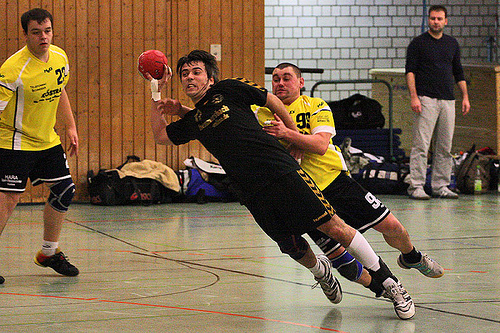 Zu Anfang gelang dies dann auch, allerdings zeigte sich dann doch, dass die ersten 30 Minuten ihren Tribut forderten. Der Vorsprung konnte zwar verteidigt werden, leider wurden aber auch wieder beste Chancen beim Gegenstoß verspielt. Spätestens ab der 45. Minute gingen dann alle Spieler auf dem Zahnfleisch und es galt die Führung mit zwei Toren (16:18) irgendwie über die Zeit zu retten. Die Mannschaft gab weiterhin alles, auch wenn bei einigen schon die „Reserveleuchte“ rot blinkte. Wie so oft kamen jetzt auch Pech und unglückliche Entscheidungen der Schiedsrichter hinzu. So bekamen wir in den letzten 10 Minuten zwei zumindest fragwürdige Zeitstrafen, die uns noch mehr Kraft kosteten und den Gegner auf ein Tor (17:18) heranbrachte. Als wir dann, nach einem klaren Foul an Stefan Dickkopf, den fälligen 7m nicht erhielten kamen die Kangaroos unverdient in Ballbesitz und konnten dann sogar im Gegenzug den Treffer zum 18:18 erzielen. Wieder im Angriff wurde uns erneut ein klarer 7m nach Foul an Olaf Hardt nicht gegeben (hier wussten die Schiedsrichter nach dem Spiel auch nicht, warum hier kein Pfiff kam und gaben ihren Fehler zu!?) und wieder kam der Gegner in Ballbesitz, konnte diesmal aber kein Kapital daraus schlagen. Nun kam dann auch noch das Pech hinzu. Markus Friedrich hatte sich auf Linksaußen gut durchgesetzt, allerdings sprang sein Ball von der Unterkante der Latte auf die Linie und ging nicht rein. Im letzten Angriff der Kangaroos gelang es dann unserem ehemaligen Spieler Bernd Witthold mit einem glücklich abgefälschten Ball den Entstand von 19:18 für die Cangaroos herzustellen. Wir hatten zwar noch einmal Ballbesitz, schafften aber in den verbleibenden 12 Sekunden nicht mehr zumindest ein Unentschieden zu erreichen.