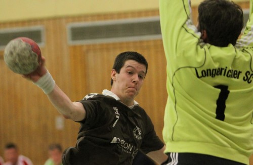 Auch wenn die Gäste zu Beginn der zweiten Halbzeit zunächst die Führung behaupten konnten kämpften die Indianer sich wieder ins Spiel. Großen Anteil daran hatte unser Youngstar Stefan Dickkopf, der sich an diesem Tag nicht nur als kämpferisches Vorbild in der Abwehr hervortat, sondern uns auch mit wichtigen Toren im Spiel hielt. Leider blieb das Pech im Angriff zunächst auf unserer Seite und etliche Bälle landeten leider wieder an Pfosten und Latte. Alleine Arne Schlausch, der ein gutes Spiel machte, setzte an diesem Tag bestimmt 8 Bälle ans Aluminium und hätte das Spiel ganz alleine entscheiden können. Die Mannschaft steckte aber in keiner Phase auf und schaffte es auch mehrfach zum Ausgleich (11:11; 13:13; 14:14), bevor sie dann beim 17:16 endlich die Führung übernehmen konnte. In dieser Phase überzeugte dann auch Marc Strothotte der mit wichtigen Toren mehrfach die Führung für die Indianer verteidigen konnte. Nach einer Auszeit von Longerich beim Spielstand von 19:19 waren noch 90 Sekunden zu spielen. Wir eroberten uns in der Abwehr den Ball und schafften im Gegenzug die Führung zum 20:19. Als die gut leitenden Schiedsrichter dann im nächsten Angriff der Gäste auf Stürmerfoul entschieden hatten wir sogar die Großchance mit zwei Toren in Führung zu gehen und das Spiel zu entscheiden. Leider vergaben wir diese Chance und Longerich hatte den letzten Angriff des Spiels. Bis fünf Sekunden vor Schluss konnte die Abwehr den Gegner auf Distanz halten. In der Hektik gab es dann aber doch eine Unkonzentriertheit und Longerich führte einen Freiwurf schnell aus. Leider stand die Abwehr in diesem Moment nicht gut gegen den Schützen und konnte den Wurf nicht verhindern, womit es dann doch zum Ausgleich für die Gäste kam (20:20).