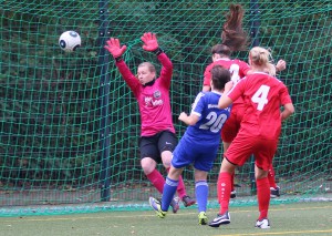 Kurz nach der Pause hatte die Fortuna die Gelegenheit zu verkürzen. Der Ball ging knapp drüber. Das war die erste wirkliche Torchance der Gastgeberinnen. Weitere folgten, aber mit dem 0:3 in 59. Minute fiel sowas wie eine Vorentscheidung, an der auch der wuchtige Kopfball von Marina Spuzic in der 73. Minute zum 1:3 im Anschluss an eine der zahlreichen Ecken der Kölnerinnen nichts änderte.