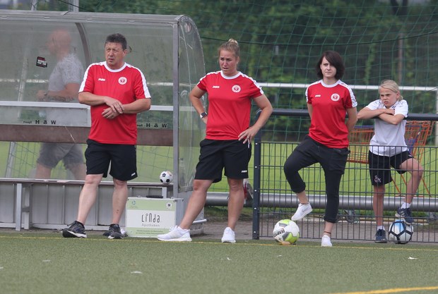 Nicht nur die Spielerinnen auf dem Platz standen (meist) neunzig Minuten unter Volldampf, auch die Trainerin war mit vollem Einsatz dabei, beobachtete das Geschehen mit Argusaugen, machte sich ihre Notizen, lobte lautstark gelungene Aktionen und wurde bei groben Patzern auch mal fuchsig.