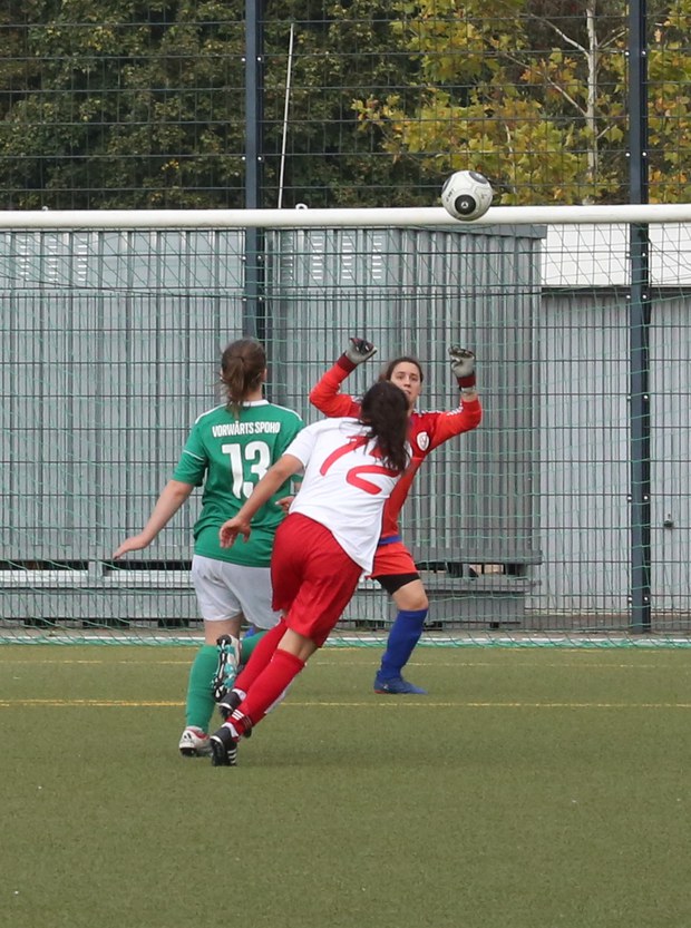 Die SpoHo-Elf konnte mit fortschreitendem Spielverlauf nur durch kräfteraubenden Kampf am Torerfolg gehindert werden. Einige Bälle fischte Sinem Simsek noch weg, bevor sie in der 24. Minute machtlos war.