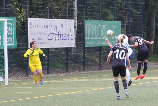 Auf Vorbereitung von Madelaine Klüser traf Susi Sarago bereits in der siebten Minute per Kopf zu Kölner Führung und das war nicht die erste Gelegenheit, die sich die Gastgeberinnen erspielen. Weitere folgten, wurden aber letztlich nicht genutzt. Im Anschluss an eine Ecke waren alle Kölnerinnen weit aufgerückt und konnten eine fünfunddreißig Meterbogenlampe zum Ausgleich durch Friederike Böggering in der zwanzigsten Minute nicht verhindern. Die Kölnerinnen stecken das zwar weg, wurden aber in der 42. Minute wiederum ausgekontert und bekamen das 1:2 durch Alessandra Vogel.
