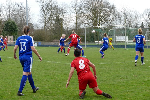 Nach der mehr als unglücklichen Niederlage am Samstag im Pokal (Verlängerung), ging es am Ostermontag zum Nachholspiel nach Bocholt. Auch der Gastgeber spielte 48 Stunden zuvor gegen Hauenhorst. Jedoch merkte man den Fortunen die über 60 minütige Unterzahl im Pokal sofort an. Schwere Beine auf einem sehr tiefem Rasenplatz machten das bekannte Fortuna Spiel mehr als schwierig. Das der Gegner aus Bocholt seinen Platz kennt und dementsprechend ausschließlich mit langen Bällen agiert war den Kölnerinnen bekannt.