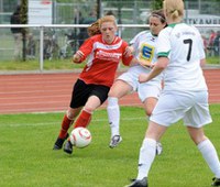 Vom Anstoß angespielt, spielte Laura Eßer einen langen Pass auf Kathrin Liersch, die fast von der Grundlinie in die...