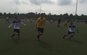 Es ging optimal los für die Gäste. Mehmet Tuhan sprintete nach acht Minuten über den linken Flügel, er legte den Ball zurück auf Kadir Umar und dieser ließ Rondorfs Torwart Christian Gomer mit einem Schlenzer aus zwölf Metern in die lange Ecke keine Abwehrchance. Der Favorit führte früh mit 1:0. Aber die Mannschaft von Jacek Bazydlo wollte sich dem Primus nicht kampflos geschlagen geben. Nach einem Freistoß aus der eigenen Hälfte stand Jannis Hurckes urplötzlich mutterseelenallein vor Fortuna-Keeper Ramazan Sert und überwand ihn mit einem Schuss in den Winkel zum 1:1 (20.). Doch die Südstädter wetzten die eigene Schlafmützigkeit nur fünf Minuten später wieder aus. Andre Otten schaltete über rechts den Turbo ein, er schoss den Ball flach nach innen und Nunzio Vella traf aus fünf Metern in die kurze Ecke zum 1:2. Mit diesem Ergebnis ging es auch in die Pause.