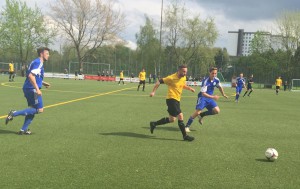 Dabei begann für die Hausherren alles wie auf dem Reißbrett entworfen. Otten setzte sich nach drei Minuten auf dem rechten Flügel durch, brachte den Ball nach innen, wo ihn Florian Gebel mit einem Halbvolley-Schuss aus acht Metern zum 1:0 über die Linie bugsierte. Es war der 31. Saisontreffer von Fortunas Goalgetter. Wer nun dachte, das verletzungsbedingte Fehlen von Abwehrchef Reimund Reiss würde sich bei den Gästen nachhaltig bemerkbar machen, sah sich komplett getäuscht. Rheinkassel-Langel verteidigte das eigene Tor immer wieder geschickt und vorne halfen der liebe Gott und Christian Hecht, der nach langen Bällen immer wieder seinen bulligen Körper gekonnt einsetzte und die gegnerische Abwehr in ein heilloses Durcheinander versetzte. Drei Minuten vor der Pause hatte Hecht freistehend eine Hundertprozentige, doch der Stürmer schoss den Ball über Fortunas Keeper Ramazan Sert hinweg nur um wenige Zentimeter am Pfosten vorbei.