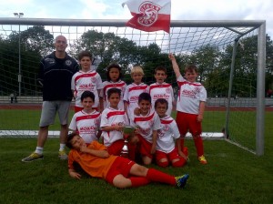 Beim gut besetzten "4.Sport Pasch Cup" in Kaarst besiegte unsere U11 im Spiel um Platz drei Fortuna Düsseldorf völlig verdient mit 2:0. In der Gruppenphase musste man den Düsseldorfern noch den Vortritt lassen, zog aber unbesiegt als Gruppenzweiter ins Halbfinale ein. Dabei ließ man Alemannia Aachen, Rot Weiß Essen, den französischen Vertreter FC Madeleinois und den Gastgeber SG Kaarst hinter sich. Im Halbfinale setzte es gegen den späteren Turniersieger MSV Duisburg die einzige Niederlage des Tages. Die Duisburger bezwangen im Finale die Borussia aus Mönchengladbach deutlich mit 4:1, was die eigene Niederlage in einem milderen Licht erscheinen ließ. Im kleinen Finale ließen unsere Jungs nichts anbrennen und nahmen nach dem 2:0 gegen Fortuna Düsseldorf stolz den Pokal für den 3. Platz entgegen.