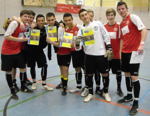 Einen Tag nach dem Sieg in Geilenkirchen hat unsere U17 auch das Turnier von Glückauf Habbelrath in Frechen gewonnen. Die aus alten Jahrgangsspielern geformte Mannschaft kämpfte sich nach einer 0:1-Auftaktniederlage gegen Wegbeg-Beeck noch zurück ins Turnier und sicherte sich mit einem 2:2-Unentschieden gegen den Bedburger SV sowie einem klaren 5:1-Sieg über den Gastgeber Habbelrath den Einzug ins Halbfinale gegen Jugendsport Wenau. Im Finale gelang gegen den FC Wegberg-Beeck dann wenig später die Revanche für die Vorrundenniederlage. Glückwunsch an das Team der U17 für diesen "Doppelerfolg".