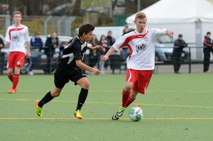 Unsere U17 hat eine Überraschung gegen den neuen Spitzenreiter 1.FC Köln U16 trotz einer starken Leistung knapp verpasst und muss weiter um den Klassenerhalt in der B-Junioren Mittelrheinliga bangen. Die Südstädter konnten ihre Torchancen nicht nutzten und wurden nach 62.Minuten durch den eingewechselten Lucas Esser bestraft. Am drittletzten Spieltag kommt nächsten Samstag der Zweitplatzierte Viktoria Köln ans Südstadion (17:45 Uhr), danach folgen der FV Wiehl (auswärts) und der SC West (zu Hause). Das Team von Trainer Thomas Gärtner benötigt aus diesen Partien noch einen Sieg um ganz sicher an den Relegationsspielen teilnehmen zu können. Aufgrund des Bundesligaabstiegs der U17 von Alemannia Aachen und des damit verbundenen Zwangsabstiegs der U16 aus der Mittelrheinliga reicht für unsere U17 in diesem Jahr schon der 13. Tabellenplatz zur Teilnahme an den Relegationsspielen.