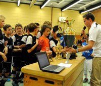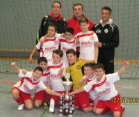 Perfekter Start ins neue Jahr: Unsere U15-Junioren haben am Wochenende die 36. Auflage des sehr gut besetzten „Jugendhallen-Turnier“ von Westfalia Gemen gewonnen und den SC Preußen Münster und den KFC Uerdingen auf die nachfolgenden Plätze verwiesen. Besonders über den Erfolg freuen konnte sich Co- und Torwarttrainer André Matthies, dem die Mannschaft den Siegerpokal als Andenken schenkte.