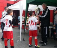 Unsere U9 hat an diesem Wochenende beim 16.Supercup in Dorsten vom 01.06-02.06 teilgenommen. Teams wie Fortuna Düsseldorf und Bayer Leverkusen wurden geschlagen. Das Turnier , dass nur Bundesligavereinen und Qualifikanten vorbehalten ist, war bei 24 Teilnehmer mit allen U9 Reviercup-Teams besetzt. Unsere U9 wurde in ein Gruppe zugeteilt, die zurecht im Laufe des Turniers als Todesgruppe bezeichnet wurde.