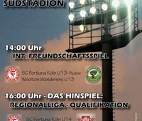 Nach dem 1:1- Unentschieden vor rund 320 Zuschauern im Kölner Südstadion am vergangenen Wochenende reist unsere U14 am morgigen Samstag zum Rückspiel nach Hennef. Der Anstoß im Kampf um den Aufstieg in die C-Junioren Regionalliga erfolgt um 17:30 Uhr auf dem Kunstrasenplatz an der Fritz-Jacobi Straße. "Die Jungs würden sich riesig freuen, wenn auch im Rückspiel einige Fortuna-Fans unsere kommende U15 bei diesem schwierigen Spiel unterstützen...