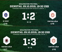 Kreispokal: U16 gelingt Sensation bei Viktoria Köln! U19 erledigt Pflichtaufgabe!