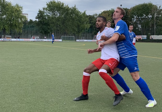 Torschützen im Zweikampf: Fortunas Jonathan Tandundu-Clausen gegen Matthias Roder.
