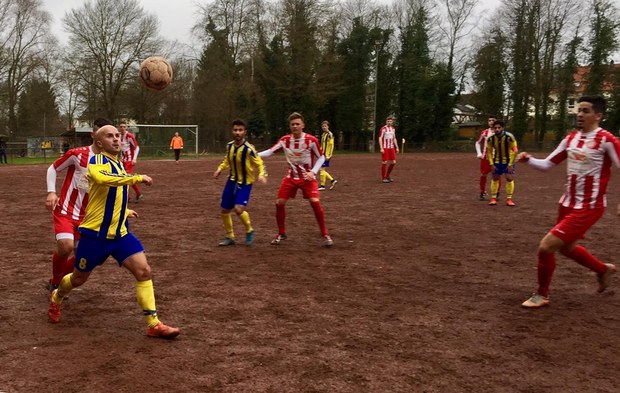 Nach einer ereignisarmen ersten Viertelstunde eröffnete Nils Remagen den Torreigen. Der Kapitän der U 23 verwandelte von rechts einen Freistoß sehenswert direkt zum 0:1 (18.). Mit zunehmender Spieldauer kamen die Hausherren trotz des Rückstandes dann besser ins Spiel. Kapitän Asham Golrang und Damian Sieniawski trieben die SG immer wieder nach vorne. Insofern verdienten sich die Worringer den Ausgleich auch zur Pause. Allerdings profitierten sie dabei von einem unnötigen Trikotzupfer des Gäste-Keepers Zicos Resvanis im eigenen Strafraum. Sieniawski verwandelte sicher zum 1:1 (29.).