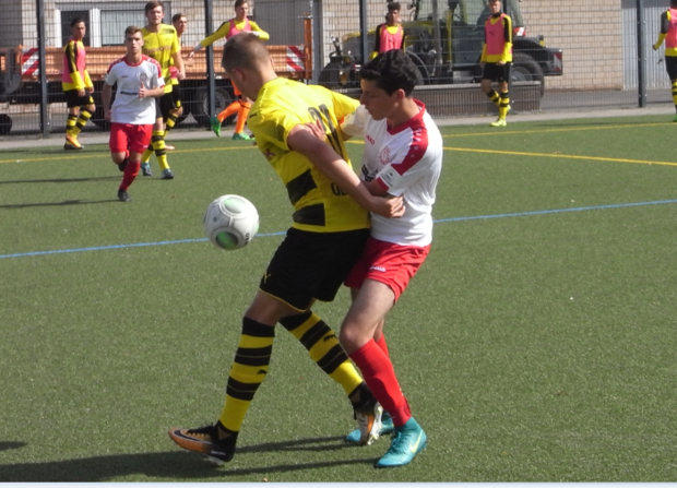 Bei strahlenden Sonnenschein am Sonntagvormittag empfing unsere U19 den BVB im heimischen Jean-Löring Sportpark. Pünktlich um 11:00 Uhr pfiff Schiedsrichter Robin Delfs die Partie an. Die ersten Minuten waren durchaus ausgeglichen. Dortmund hatte wie erwartet mehr Ballbesitz, den die Borussen allerdings, aufgrund der defensiv sehr disziplinierten Südstädter, nicht in Torchancen ummünzen konnten. Ein vermeidbares Foul in der 23. Minute bescherte der Borussia eine günstige Freistoßposition. Und so kam es, wie es kommen musste. Jan-Niklas Beste verwandelte aus knapp 23 Metern halbrechter Position, mit einem präzisen Linksschuss, zum 0:1.
