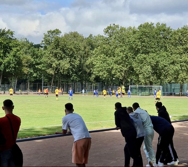 Der Favorit aus der Farbenstadt traf bereits in den ersten 45 Minuten zweimal. Nach einem Foul an Aaron Tshimuanga auf dem rechten Flügel trat Sertdemir den Freistoß mit links. Dort lief Ingyom Jung perfekt ein und wischte den Ball mit dem Kopf zum 1:0 ins lange Eck (10.). Beim 2:0 spielte Bravo den Ball weiter nach links. Über zwei Stationen landete die Kugel an der Strafraumgrenze bei Ayman Aourir. Der erhöhte mit einem präzisen Schuss rechts oben ins Eck auf 2:0 (29.).