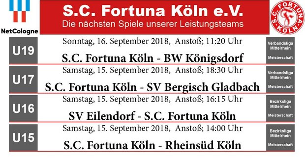U19-U15: Fortuna-Spielplan für das Wochenende