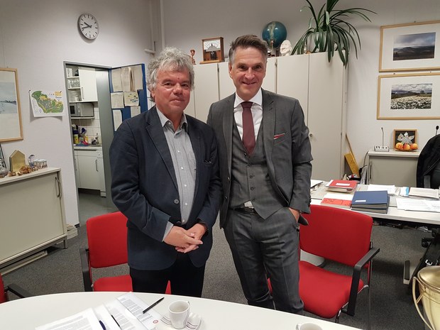 Schulleiter Dr. Harald Junge und Fortuna-Präsident Hanns-Jörg Westendorf bei der Vertragsunterzeichnung.