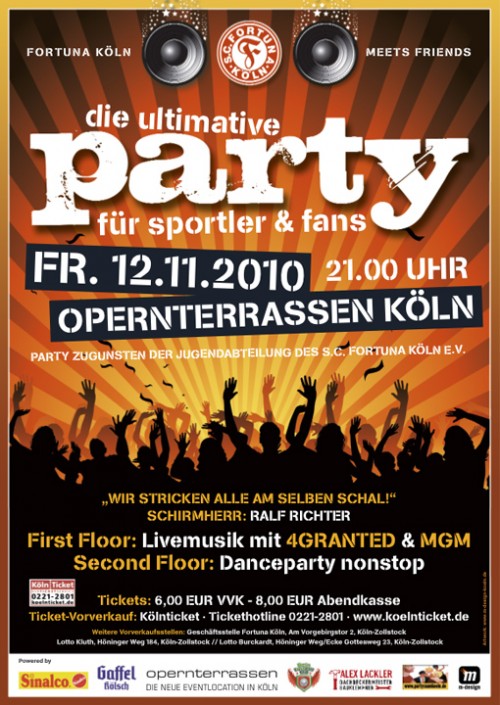 Am 12. November 2010 findet im Herzen Kölns, in den Opernterrassen eine Premiere statt. Edris Siddiq (Trainer der U15-Jugend) und Alexander Lackler (Mitglied im Jugendausschuss) vom SC Fortuna Köln veranstalten zu Gunsten der Jugendabteilung des Südstadtclubs eine Party, die es in dieser Form wohl noch nie gegeben hat.