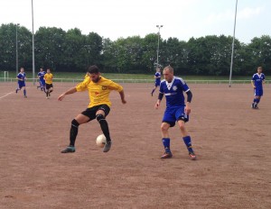 Im ersten Spielabschnitt diktierten die Gäste das Geschehen. Alex Kirschbach (22.) und Milo Mc Cormick (28.) kamen zu Schussversuchen. Beide Bälle flogen aber klar über das von Hans-Jörg Lauer gehütete Zündorfer Tor. Bei der Fortuna fehlten mit Marco Ptak (Urlaub) und Christian Groth, für den die Saison nach einem im Spitzenspiel gegen Gremberg-Humboldt erlittenen Bänderriss vorzeitig beendet ist, die Top-Torschützen Nummer zwei und drei. Zudem fielen Cetin Akin (Urlaub) und Heiko Dietz (verletzt) aus. Für Groth und Ptak standen Joe Ehrentraut und Kirschbach in der Anfangsformation. Verdient ging der Tabellenführer nach 36 Minuten in Führung. Kosta Sakkos bediente mit einem langen Ball Andre Otten auf dem rechten Flügel, dessen Hereingabe staubte Kadir Umar am langen Pfosten zum 1:0 ab. Fast 40 Minuten kam die Germania nicht einmal gefährlich in den 16-Meter-Raum der Fortuna. Doch postwendend hatte Damir Brkan nach Flanke von Daniel Hinze das 1:1 auf dem Kopf. Aber er vergab die Hundertprozentige. Der Ball landete knapp neben dem Pfosten. Drei Minuten später prüfte Umar Lauer mit einem strammen Fernschuss, aber der Keeper war auf dem Posten. Kurz vor der Pause bereitete Milo Mc Cormick das 2:0 vor. In der Mitte schoss Florian Gebel den Ball nach einem Pressschlag flach in die lange Ecke. Es war das 26. Saisontor von Fortunas Goalgetter.