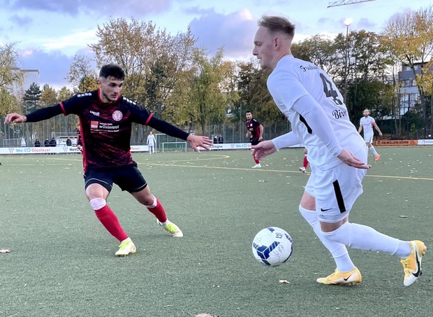 Fortunas Batuhan Özden (l.) schirmt den Frechener Jan-Eric Birken ab.