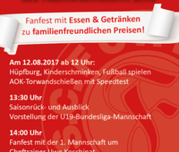 Knapp eine Woche (Samstag, 12.08.2017) ist es noch bis zur Saisoneröffnung des Nachwuchszentrums mit angeschlossenem Fanfest. Die Vorbereitungen laufen seit spätestens zwei Wochen auf Hochtouren. „Wir starten um 12 Uhr mit einem bunten Kinderprogramm auf dem kleinen Rasenplatz. Von Kinderschminken und Kinderspielen über eine Hüpfburg bis hin zum AOK-Torwandschießen mit Speedtest ist alles dabei, “ erklärt Mitorganisatorin Luca-Alicia Rogge.
